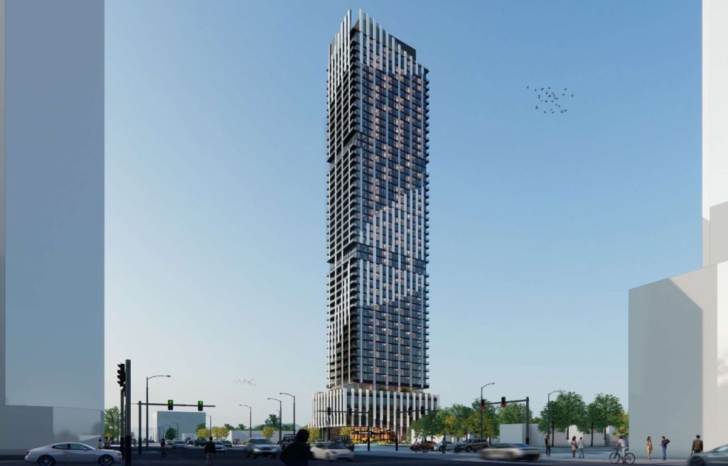 The project would deliver 524 rental apartments (including 45 affordable units) with a mix of one-, two-, and three-bedroom suites. It would also feature ground-floor retail, indoor and outdoor resident amenities, two levels of underground parking, and extensive bicycle parking, reflecting the site’s location in a transit-focused, rapidly intensifying neighbourhood.