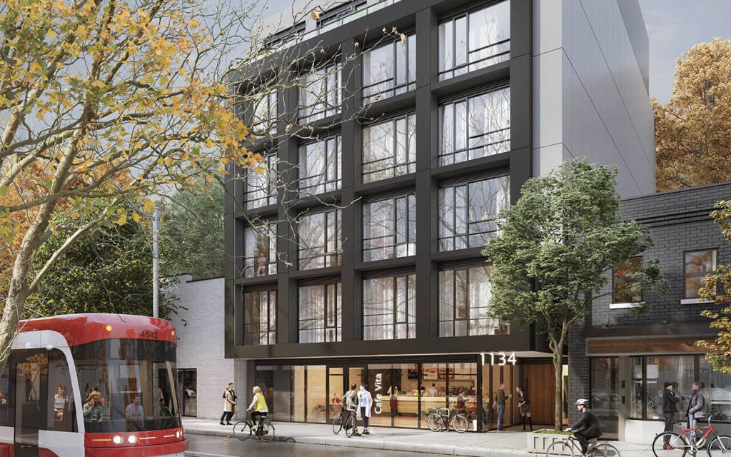 1134 Queen East is a proposed 7-storey mixed-use condominium development by Lamb Development Corp, with architecture by A&Architects. The site is located on the north side of Queen Street East, just east of Bertmount Avenue, in Toronto’s Leslieville neighbourhood.