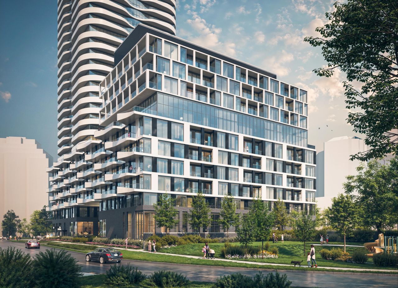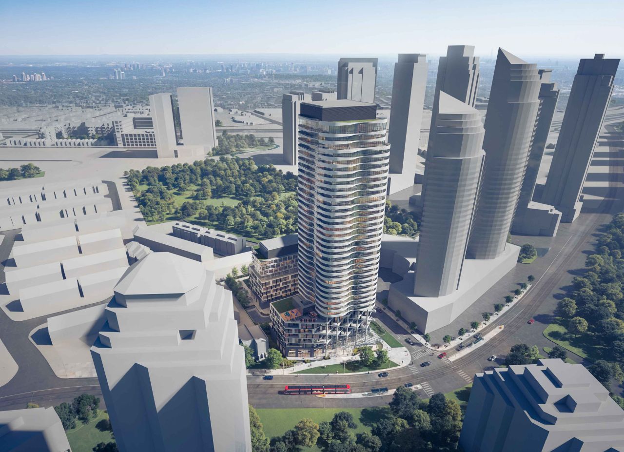 2256 Lake Shore West is a proposed two-tower development in Mimico, rising 10 and 37 storeys at the northwest corner of Lake Shore Boulevard West and Legion Road. Designed by Core Architects for 2589727 Ontario Ltd, the project will bring 575 condominium units with ground-floor retail, along with dedicated parkland and contributions toward nearby green space improvements.